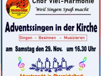 Der Chor Viel-Harmonie lädt euch herzlich ein, zum Adventssingen im Rahmen des Obermichelbacher Adventsmarkts am Samstag, den 29.11. um 16:30 Uhr in der Heilig-Geist-Kirche Obermichelbach.