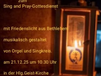Herzliche Einladung zum Sing & Pray-Gottesdienst mit Friedenslicht aus Bethlehem, musikalisch gestaltet von Orgel und Singkreis, am Sonntag, den 21.12. um 10:30 Uhr in der Heilig-Geist-Kirche Obermichelbach. Pfrin. Ulrike Weeger & der Singkreis Obermichelbach freuen […]